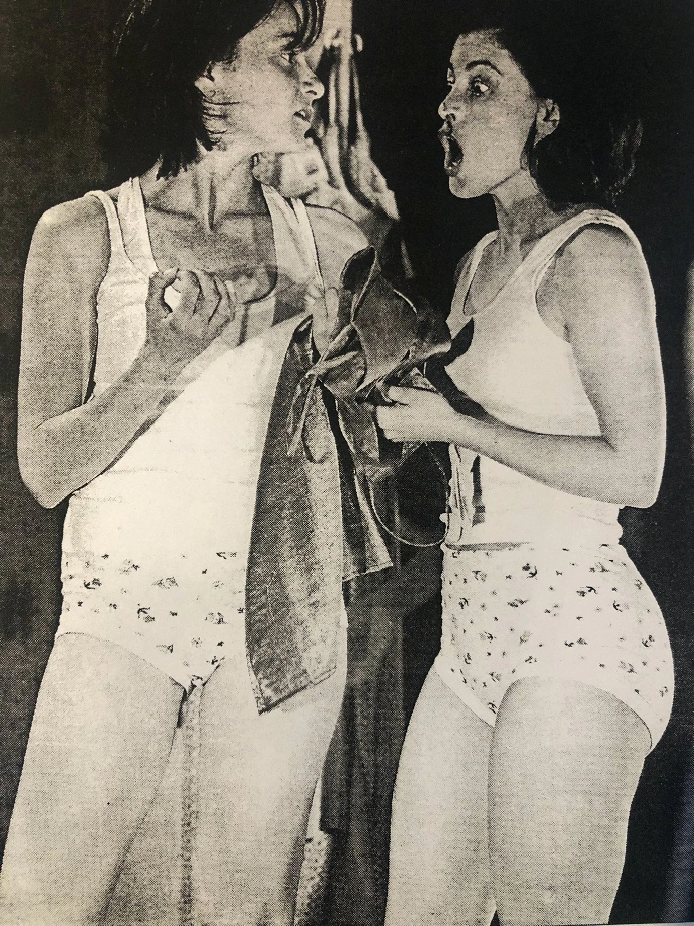 “This Who’s Afraid is a confronting and riveting sleight of hand, cutting and splicing together four writer’s scripts loaded with facts and metaphors of social disintegration into two close-to-seamless acts…In Melissa Reeves’ Dreamtown, Maria Theodorakis and Daniela Farinacci are spunky and wonderful as two Madonna-as-Kylie kids trying on slinky dresses and swigging bourbon in a fitting room. Their riotous lies and tough stance though, are useless when they are arrested for shoplifting.” Lee Christofis, The Age.